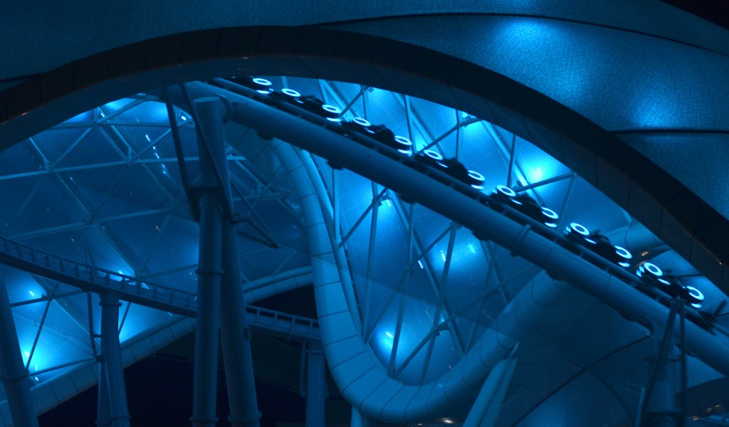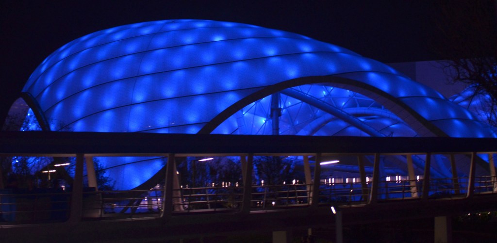 Nighttime photos from Magic Kingdom mostly taken from the Tomorrowland People Mover, including TRON: Lightcycle Run before it’s opening.